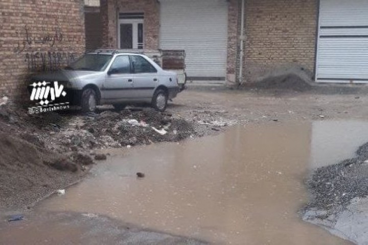 وضعیت نابسامان یکیاز کوچه های خیابان فتحی بعد از بارش باران